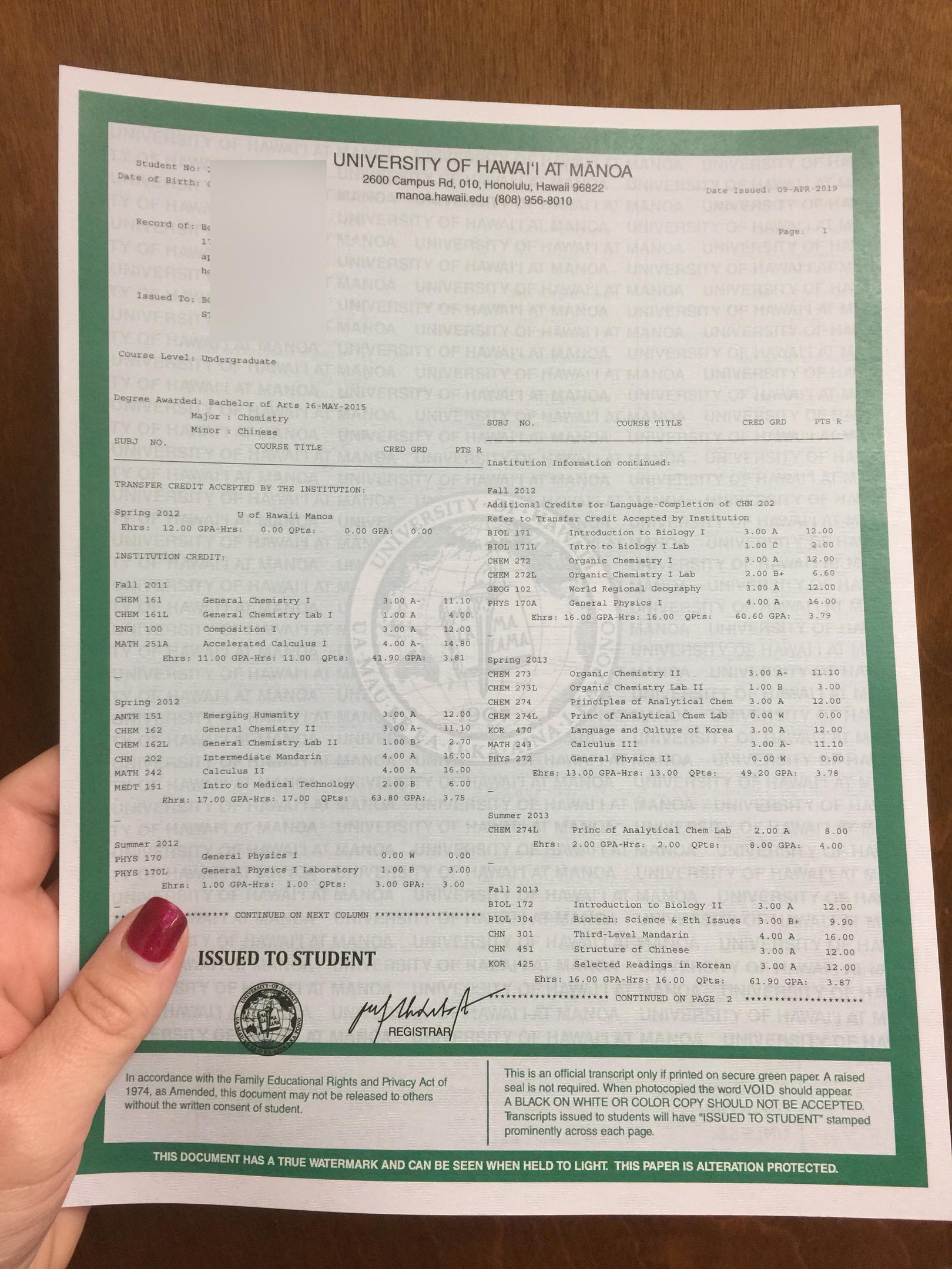Note: Unofficial transcripts are suitable for personal reference or informal use, but are not accepted for formal applications or official verification.