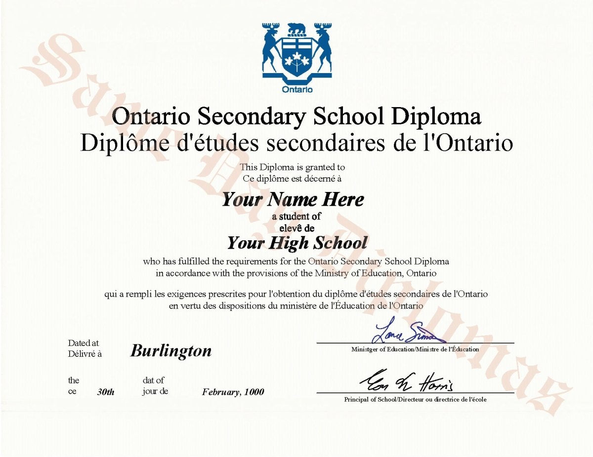 These novelty, real or replacement Secondary diplomas from Canada are a must for any school looking to provide quality documents to their graduates. They are also great for novelty, replacement, and as an extra copy or a Digital File to have for your records.