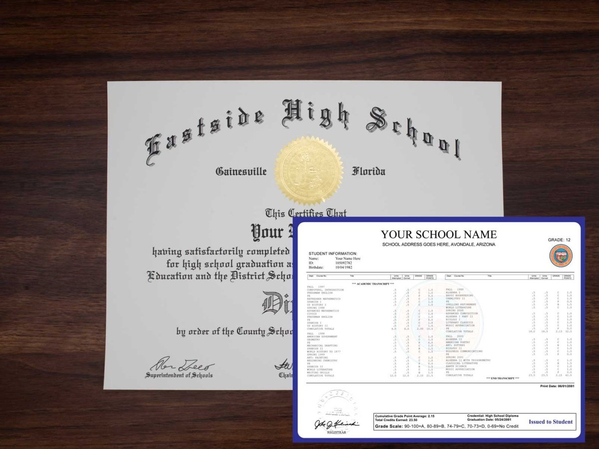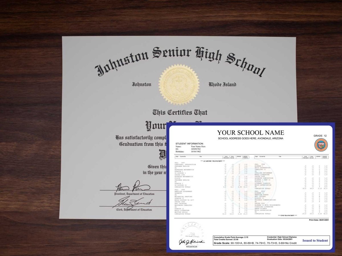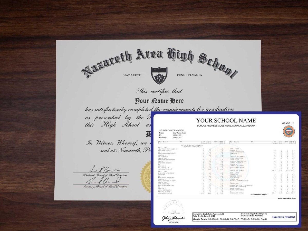 This novelty, real or replacement high school diploma and transcript package is a must for any school looking to provide quality documents to their graduates. They are also great for novelty, replacement, and as an extra copy or a Digital File to have for your records.
